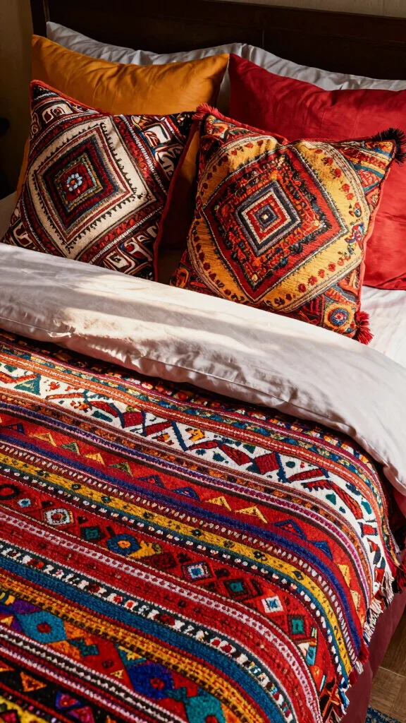 Ethnic patterns in throw pillows can bring a global touch to your bedroom decor. Look for pillows adorned with traditional motifs or textiles from various cultures that tell a story. These unique pieces can serve as conversation starters while adding vibrancy to your space.