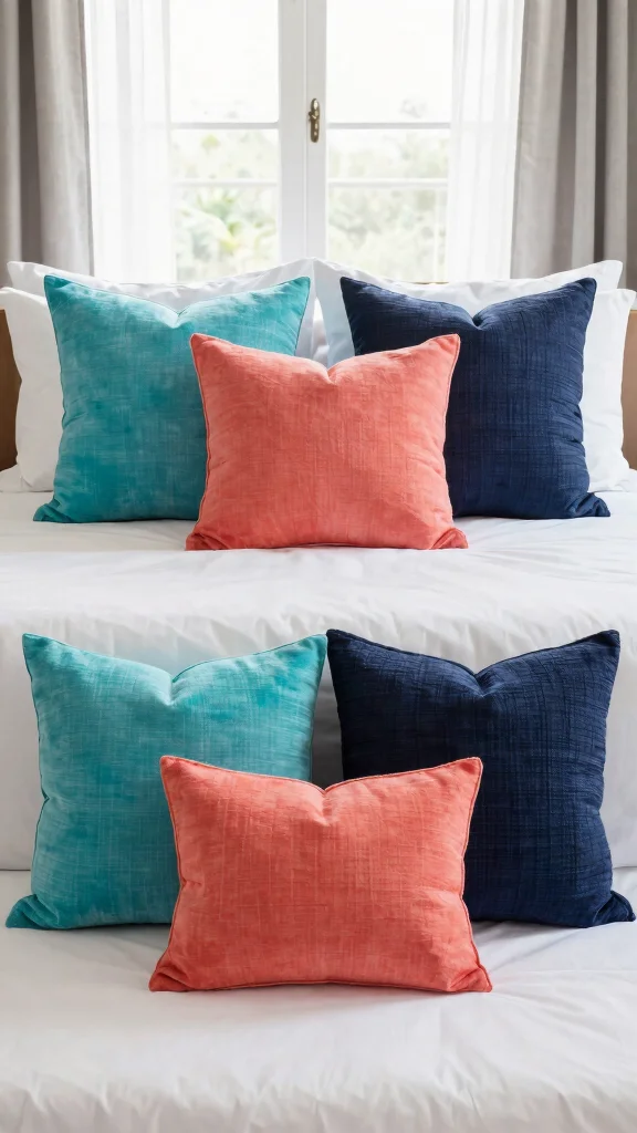 If you love vibrant colors, bold color-blocked throw pillows can energize your bedroom. These pillows create a striking visual statement, bringing life and excitement to your space. Imagine pillows in contrasting colors popping against neutral bedding, making your bed a focal point.