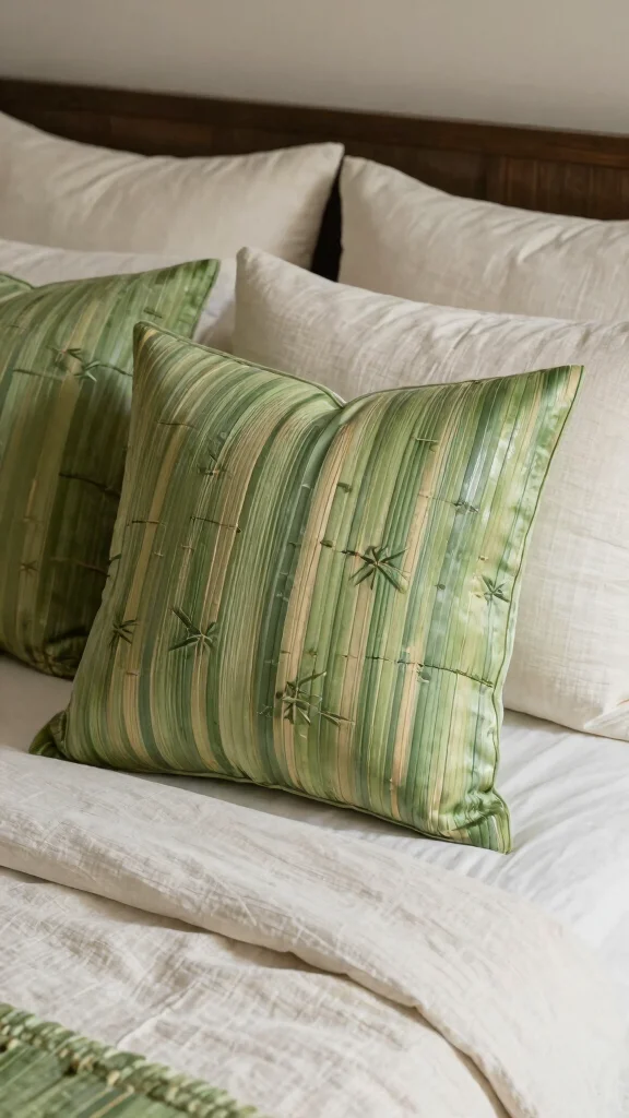 Bamboo fabric throw pillows offer a luxurious touch with a sustainable twist. Known for their softness and breathability, these pillows can elevate your comfort while being gentle on the environment. Picture a serene setup with bamboo pillows in soft greens and beiges, creating a tranquil atmosphere.