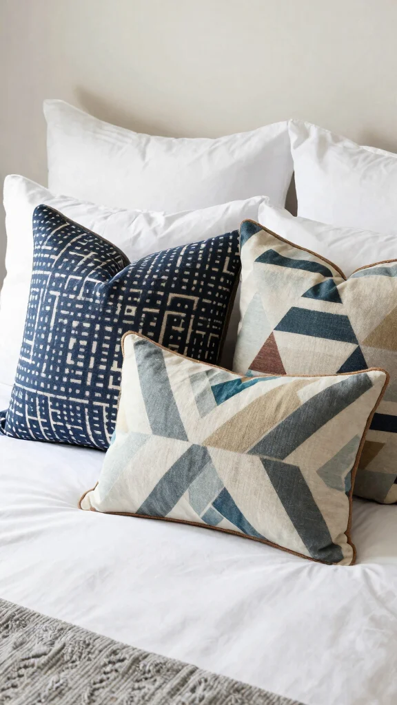 Geometric throw pillows introduce a modern edge to your bedroom decor. Featuring various patterns, these pillows can suit any style, from bold triangles to subtle stripes. Imagine how eco-friendly fabrics like organic cotton can blend sustainability with contemporary aesthetics.