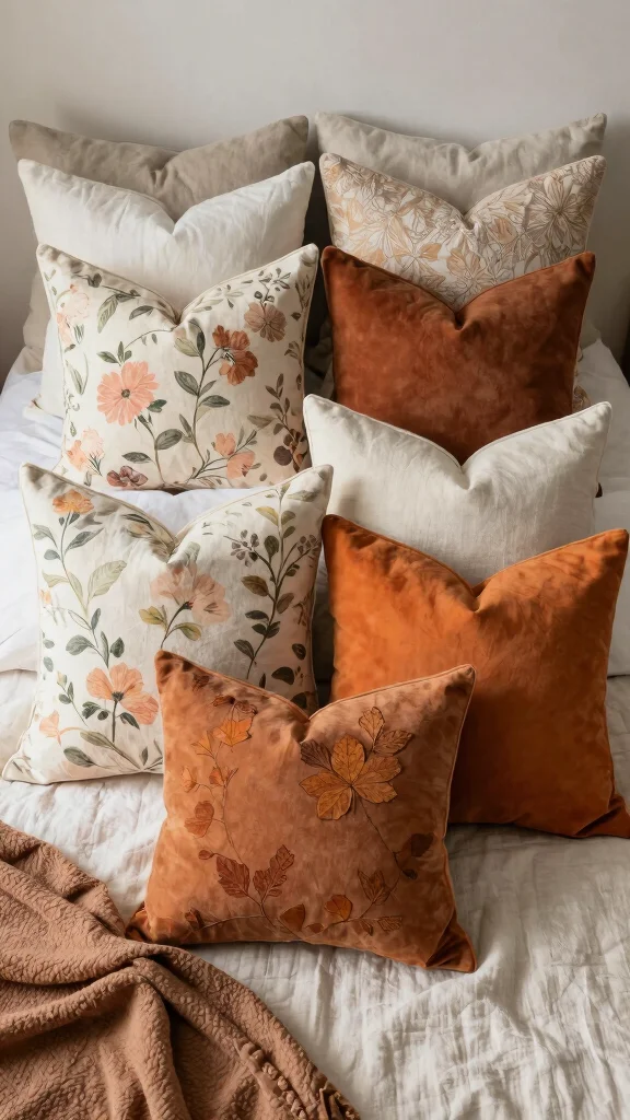 Consider swapping out floral designs for rich autumn colors as the seasons change. Opt for pillow covers that are easy to switch to make transitions smooth. Adding seasonal motifs like leaves or snowflakes can enhance your decor’s charm.