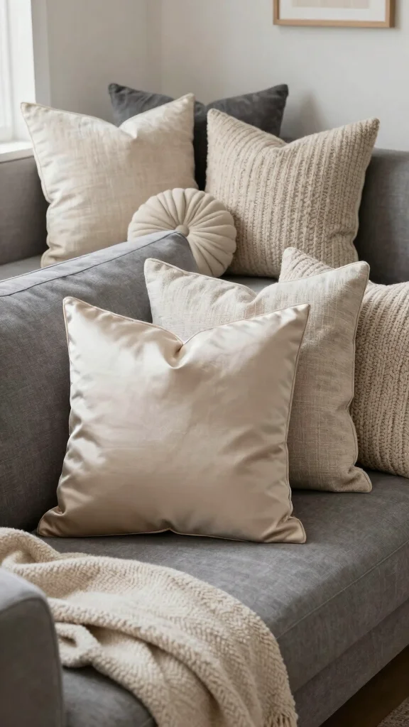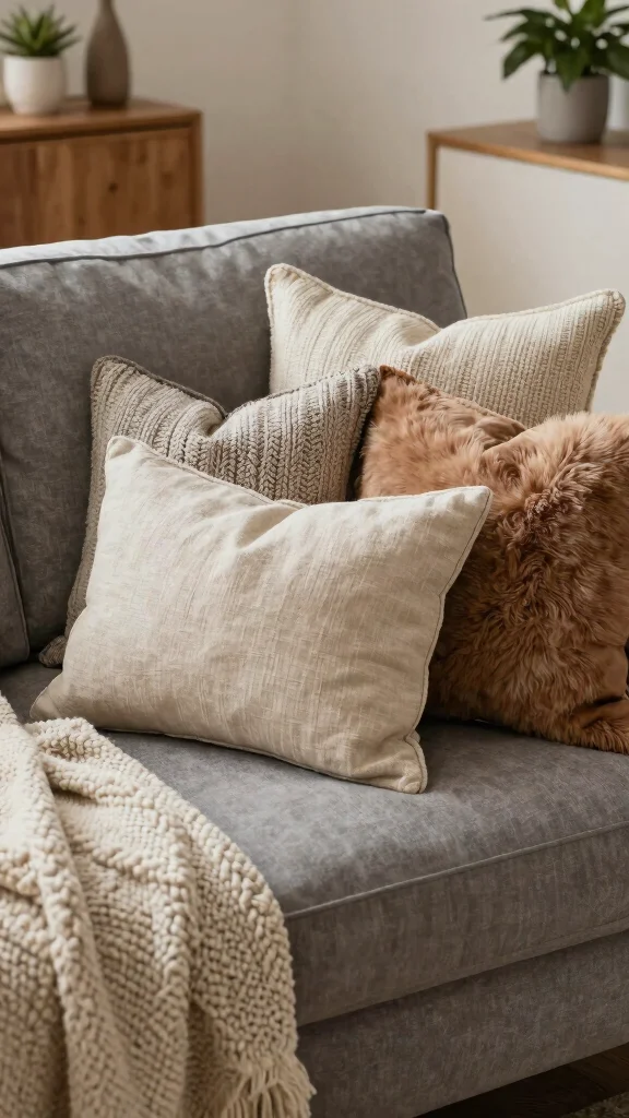 Fun fact: when you stack 3–5 textured throw pillows for grey couch, your space instantly feels cozier—up to 40% more inviting. Mix linen, knit, and faux fur for that boho-chic vibe.