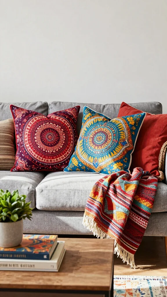 Patterns can infuse personality into your living space. If you have a simple grey couch, vibrant prints can stand out beautifully. Look for bohemian-inspired designs, geometric shapes, or even floral patterns. It’s best to mix patterns carefully; aim for one large pattern, one medium, and one small for a cohesive look. This variety keeps things visually engaging while ensuring harmony.