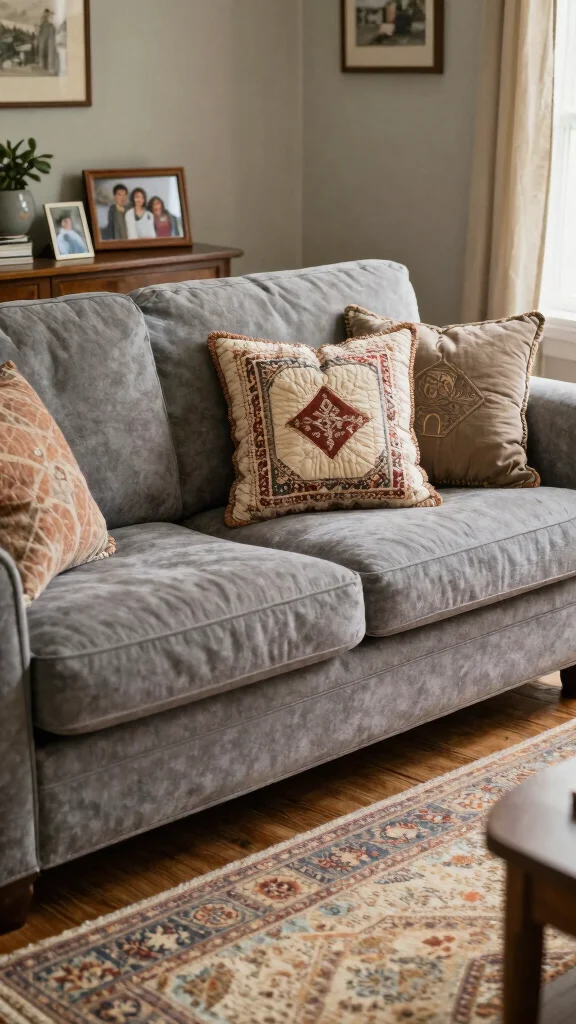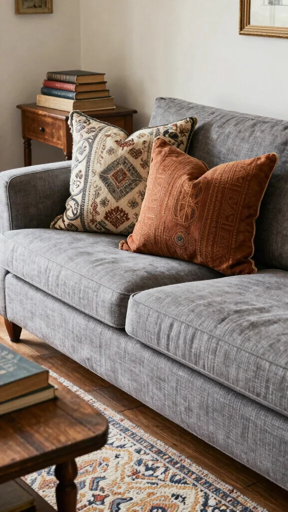 Mixing vintage pieces with modern accents creates an eclectic balance that feels curated over time. Vintage pillows can highlight your personal style while making your grey couch feel like the heart of a well-loved home.