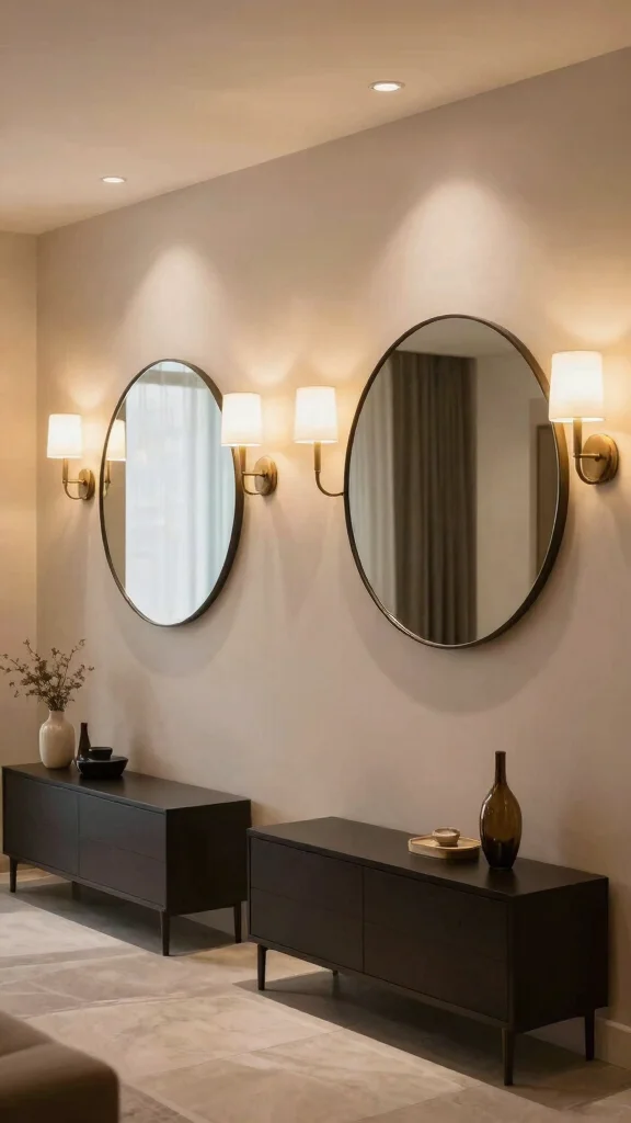 This technique not only highlights the mirrors but also adds a functional element to your decor. Wall-mounted sconces or LED strip lights can create a warm glow, perfect for entryways or dining areas.