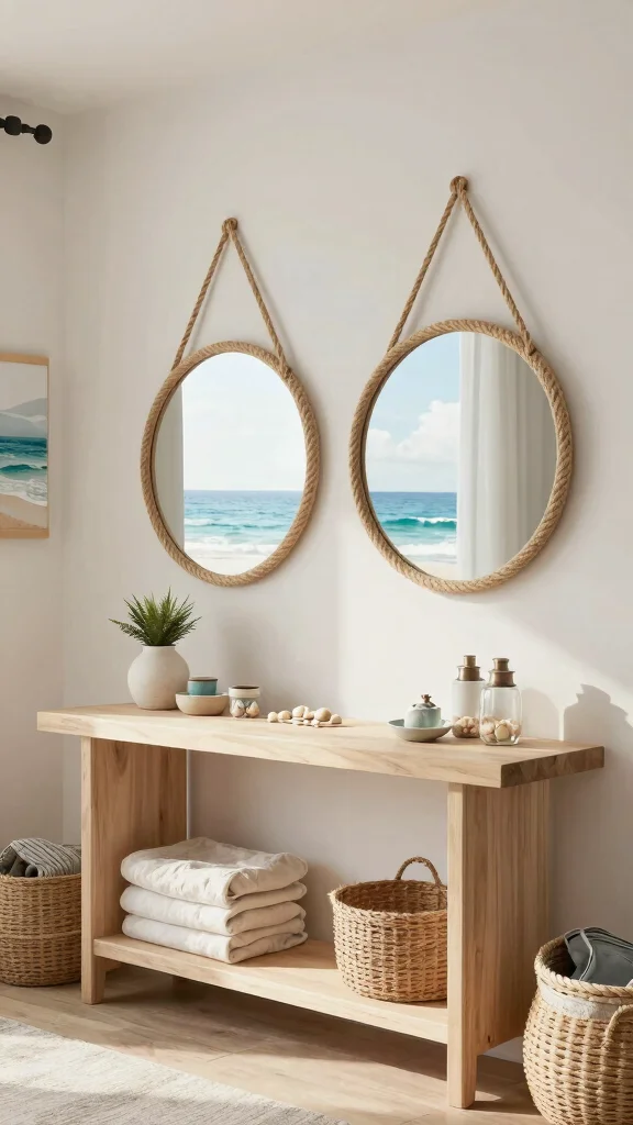 If you adore the ocean, round mirrors framed in nautical materials can bring a refreshing coastal vibe.