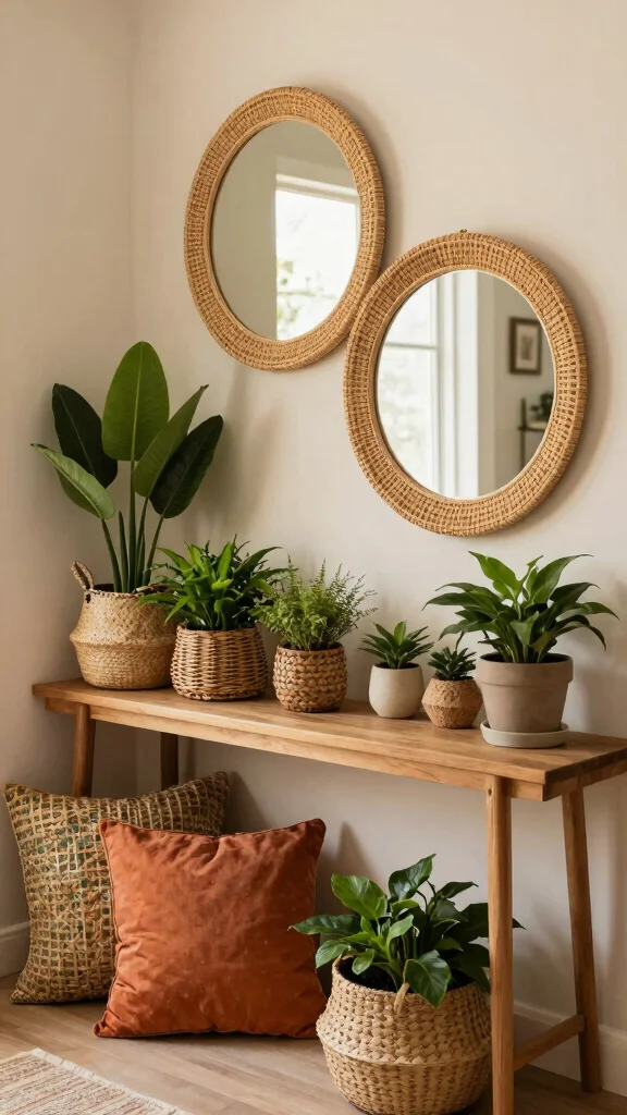 – Mix various natural textures around the mirrors, such as woven baskets or wooden accents.