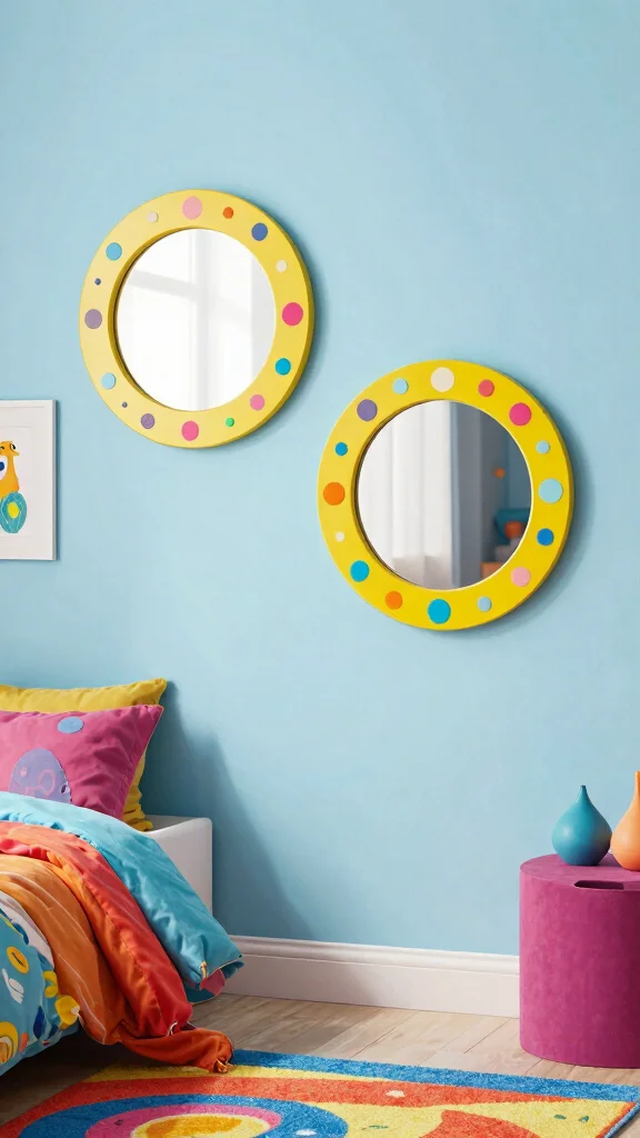 This fun decor idea shines in creative spaces like art studios or children’s rooms. Surrounding the mirrors with delightful patterns or vibrant hues infuses energy into your decor.