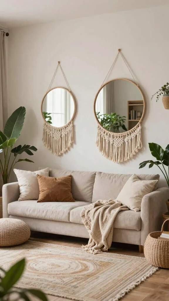 – Incorporate decorative elements like macramé or fabric behind the mirrors for added texture.